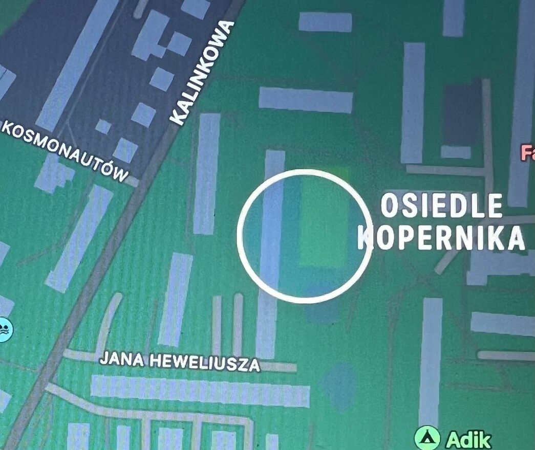 Lokalizacja osiedle Kopernika ulice Kalinkowa i Heweliusza. Tam gdzie na mapie pokazuje kursor myszki.