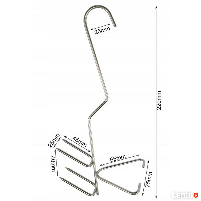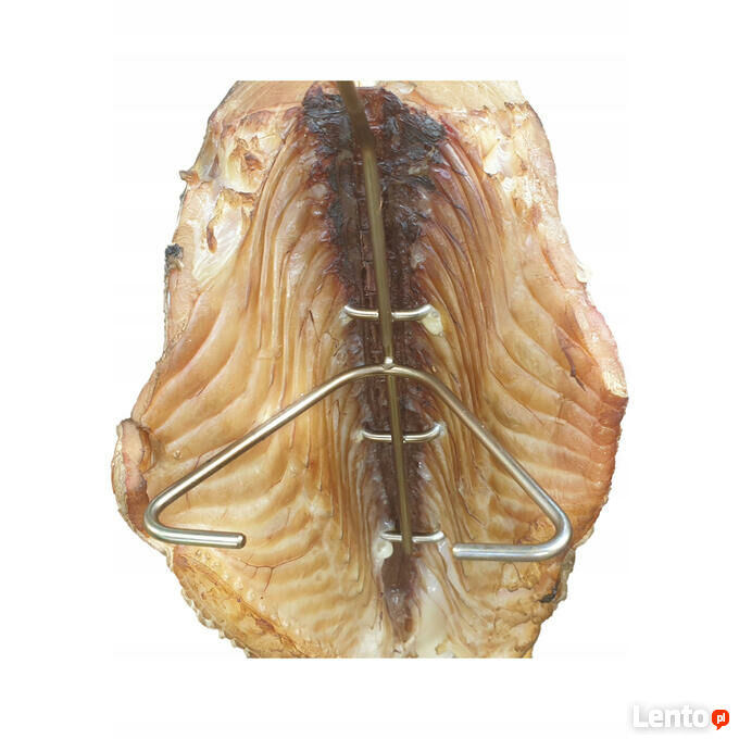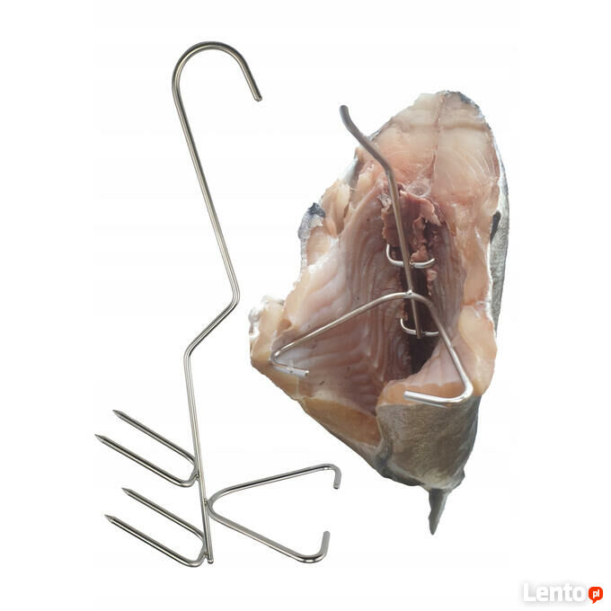 Haki do wędzenia ryb z dużą, regulowaną rozpórką umożliwiającą rozszerzenia lub zwężenia płatów ryby. Wystarczy pręt rozpórki ścisnąć lub rozgiąć palcami, aby dostosować go do wielkości wędzonej ryby. Haki mają również dwa podwójne ostrza pozwalające okalać kręgosłup, co zapobiega oderwaniu mięsa od kręgosłupa podczas wędzenia na gorąco. Hak polecany głównie do wędzenia dużych ryb pokrojonych w dzwonka. Oczywiście można zawieszać na haku wszystkie inne ryby w całości. Uniwersalność haka pozwala bez problemu wędzić większość ryb, a także filetów.Dane techniczne: