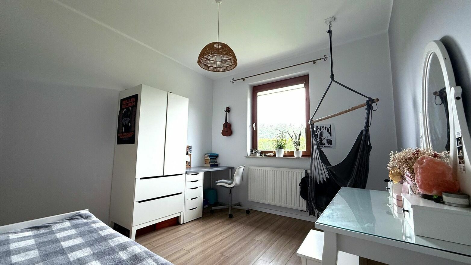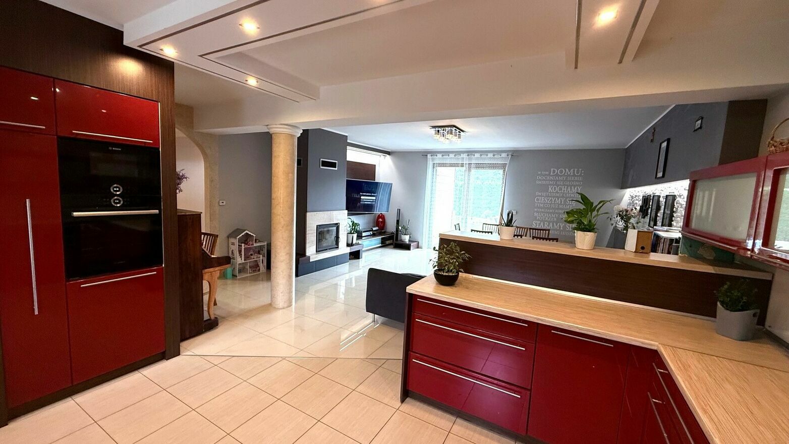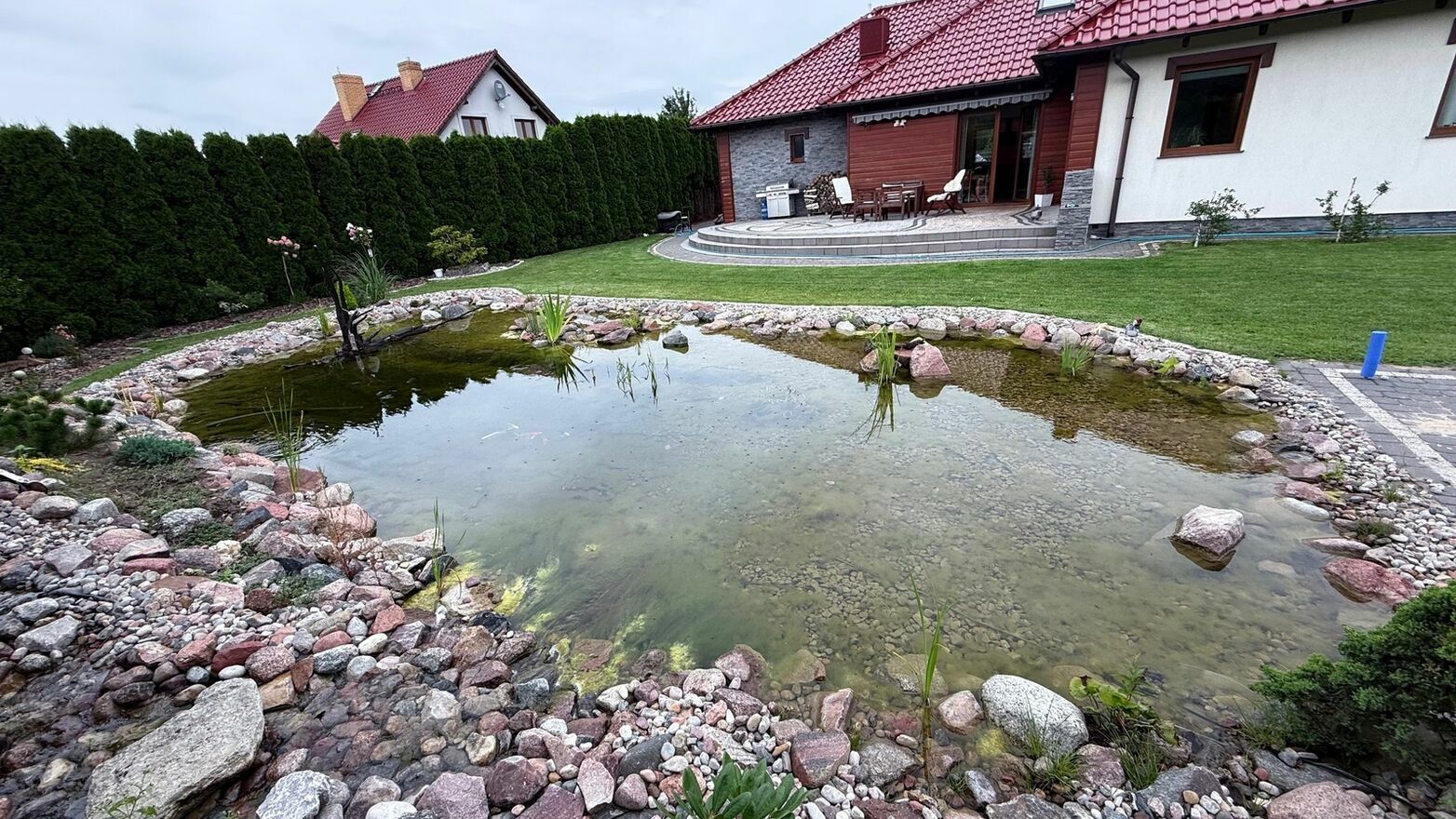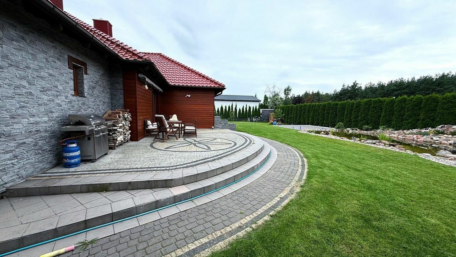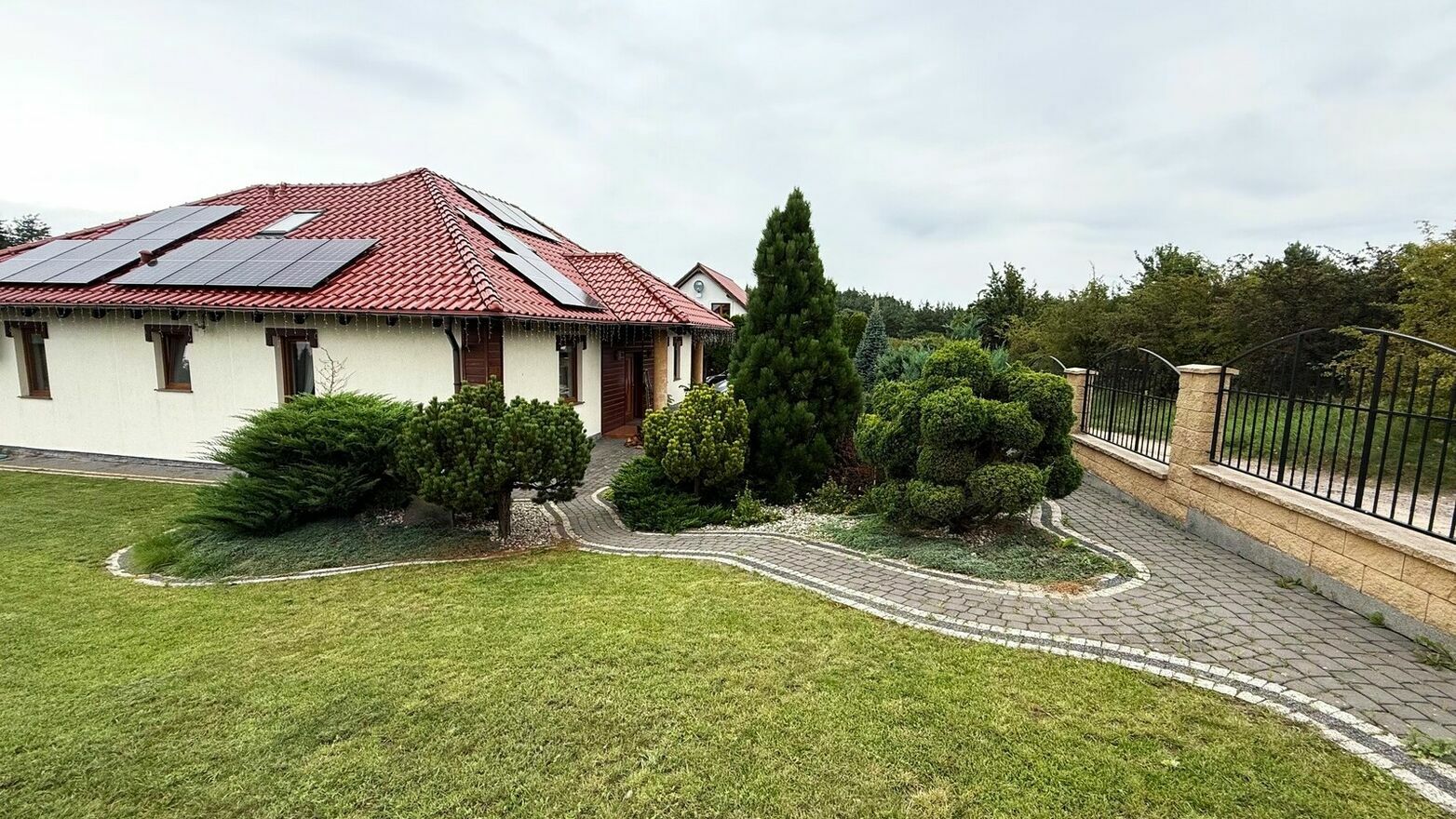 Biuro Nieruchomości PROFIL prezentuje do sprzedaży atrakcyjny dom parterowy z użytkowym poddaszem, położony na osiedlu domków jednorodzinnych w Nowej Wsi w Grudziądzu (woj. kujawsko-pomorskie). Dom wybudowany w 2009 roku z wysokiej jakości materiałów. Dach wielospadowy pokryty dachówką ceramiczną, okna PCV. Parter domu to powierzchnia 140m2, znajduje się tu : nowoczesny salon z otwartą kuchnią, trzy samodzielne pokoje, imponująca łazienka z WC, duży hol z nowymi ażurowymi schodami dębowymi prowadzącymi na poddasze. Poddasze o powierzchni 90m2 zostało wyremontowane wg. projektu budowlanego. Są tam cztery oddzielne pomieszczenia. Z salonu bezpośrednio wyjście na przestronny taras i do ogrodu. Dom wyposażony jest w instalację fotowoltaiczną oraz magazyn energii. Na dachu zainstalowano fotowoltaikę o mocy 7,05 kW. Montażem paneli zajęła się firma Columbus – charakteryzująca się wysoką jakością wykonania i profesjonalizmem. W bryle budynku znajduje się garaż o powierzchni 25m2 oraz kotłownia z magazynem energii. Niewątpliwym atutem nieruchomości jest jej położenie oraz wyjątkowa, ładnie zagospodarowana działka o powierzchni 1.400m2. W ogrodzie znajduje się oczko wodne z wodospadem i strumykiem. W oczku zastosowano bardzo dobrą filtrację wody, co przejawia się w jej krystalicznej czystości. Nad samym brzegiem oczka jest przygotowane miejsce pod altankę do letniego wypoczynku. Na działce znajduje się również szklarnia, warzywnik, drzewka owocowe oraz krzewy ozdobne. Świetna lokalizacja - spokojna, dobrze skomunikowana okolica. Oferta dla osób ceniących ciszę i spokój.
