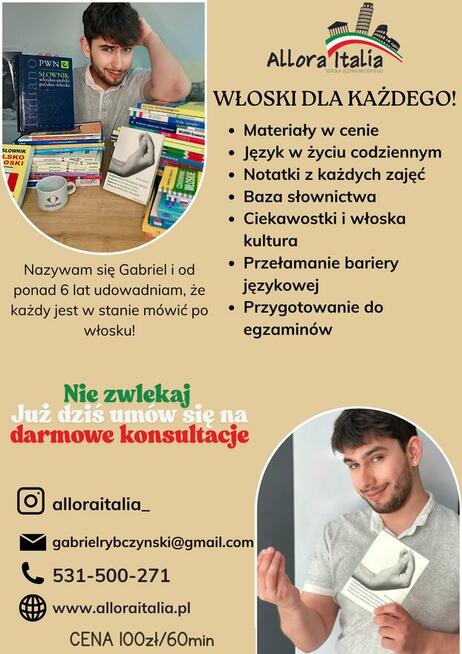 Witam, zapraszam na prywatne lekcje, korepetycje, kursy z języka włoskiego. Jestem wykładowcą akademickim z 20-letnim ...